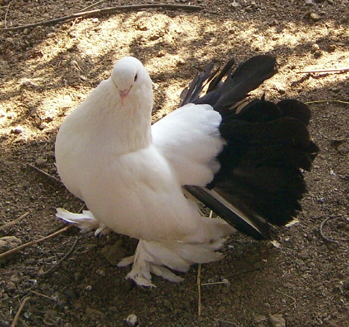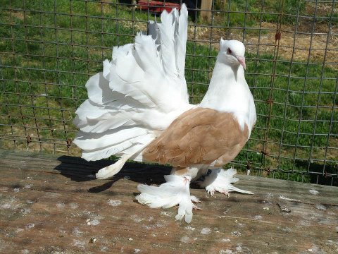 این نژاد فاقد کاکل و پر پا می باشد .در این نژاد کبوتر سر خود را تا دم عقب نگه می دارد و کله لرزان است .تعداد دم این نژاد از ۲۶ عدد تا ۴۰ عدد می باشد .